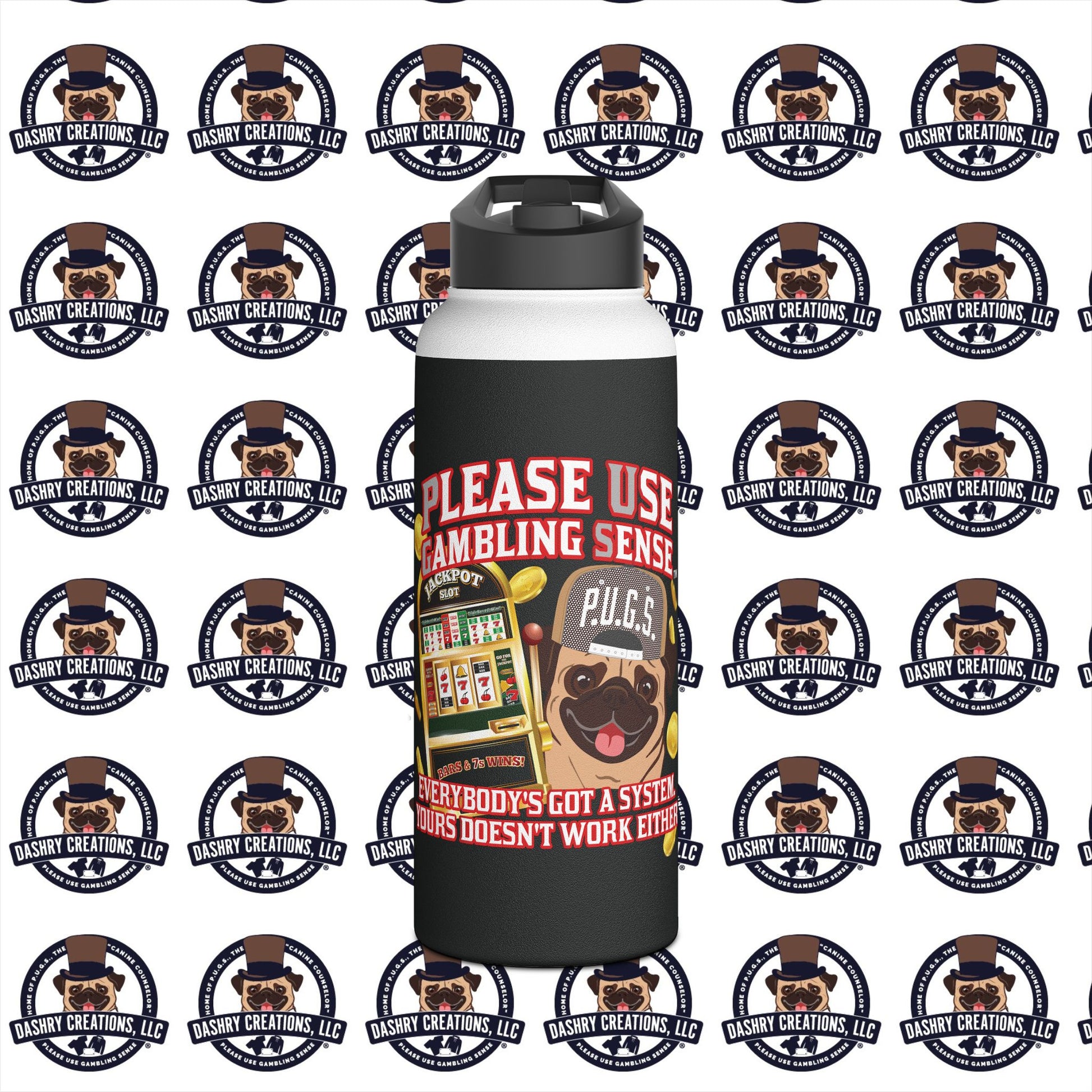 Slots “Everybody’s Got A System” Tan & White Backwards Baseball Cap Stainless Steel Water Bottle, Standard Lid